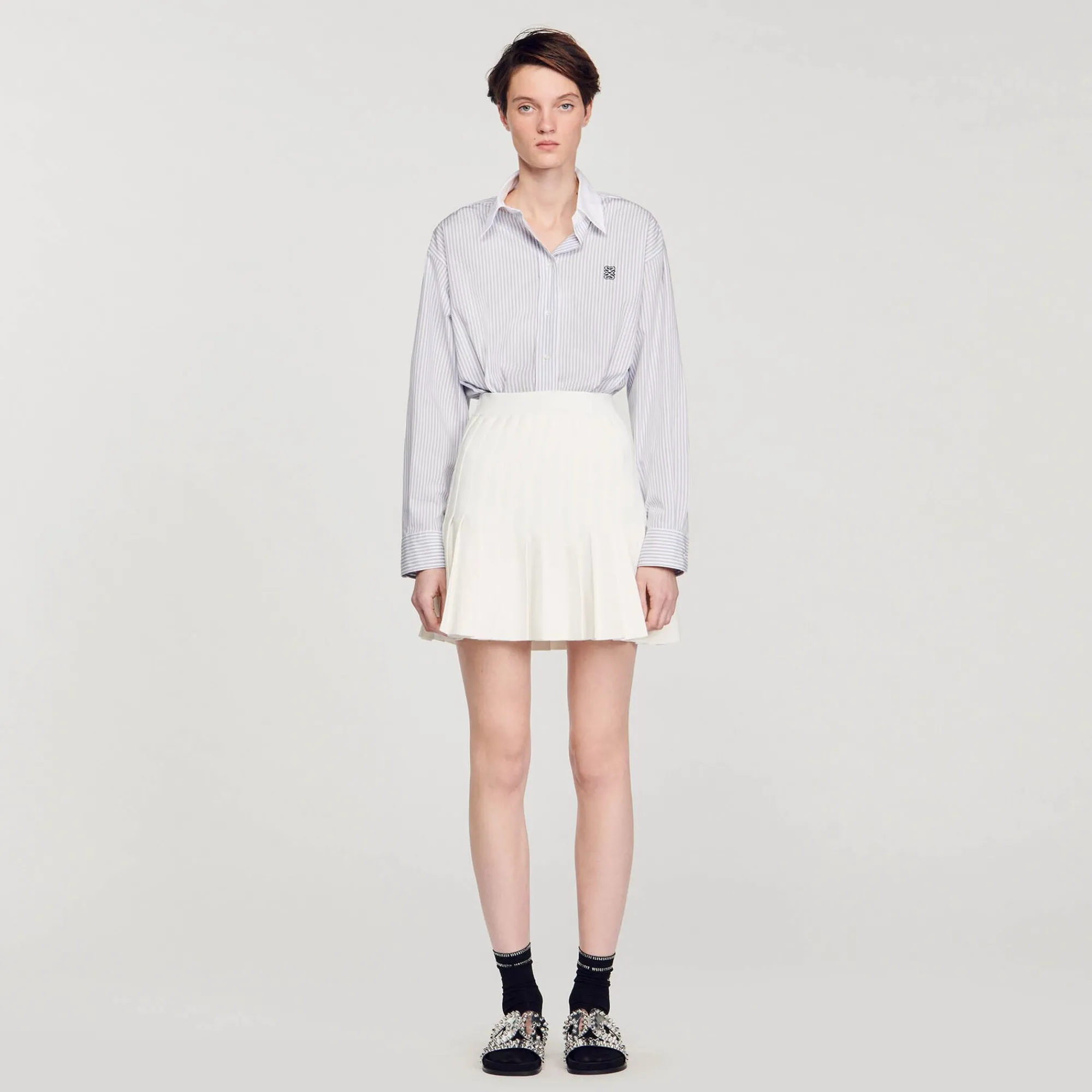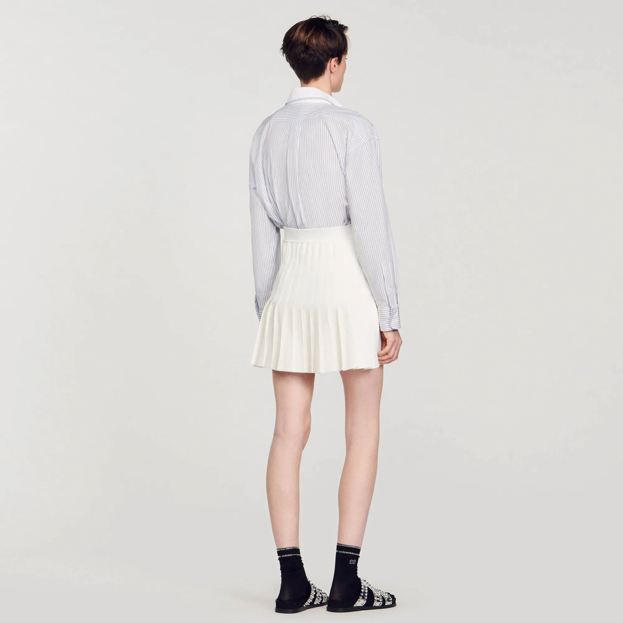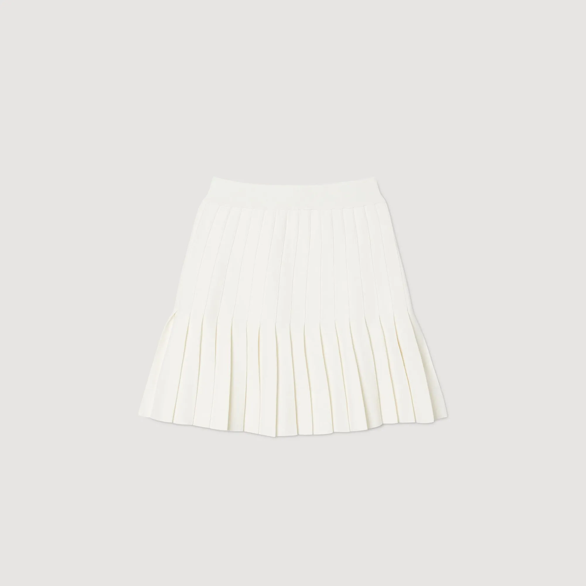 Saia Curta De Malha Plissada Levemente Alargada Na Parte Inferior. Saia Curta Feminina De Malha Sandro Pressionada Na Pa…