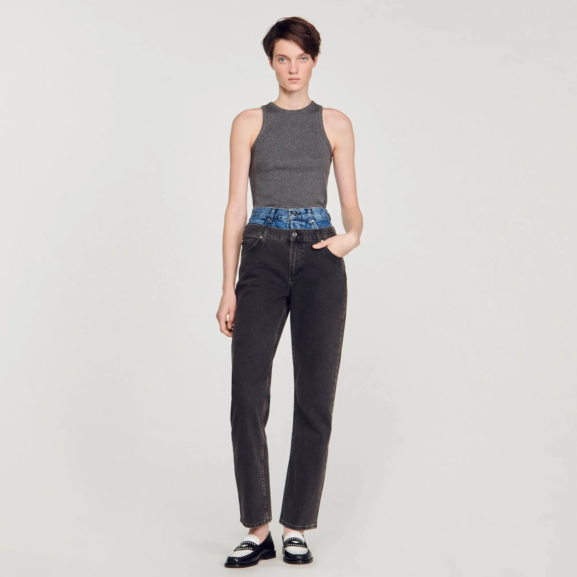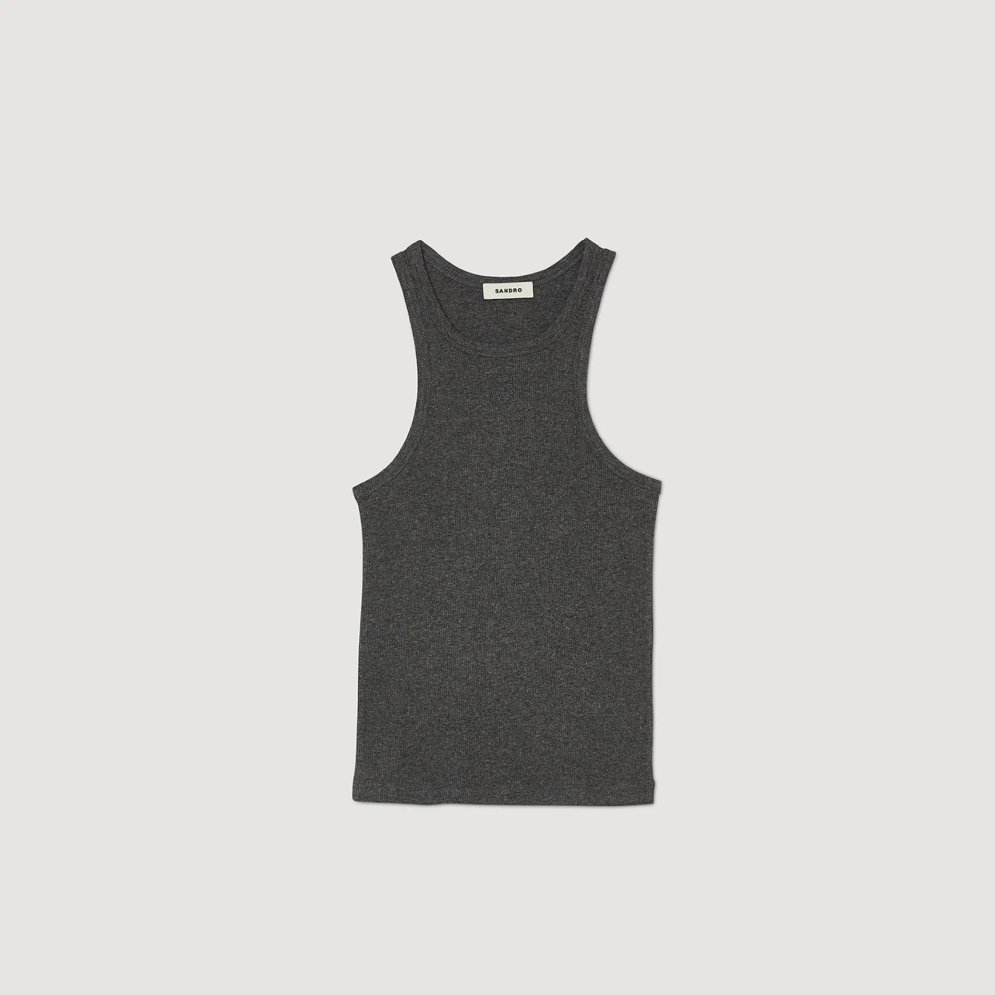 Regata Curta Com Decote Redondo E Cavas Americanas, Decorada Com Bordado Duplo S No Peito. Camiseta Curta Sandro Femme G…