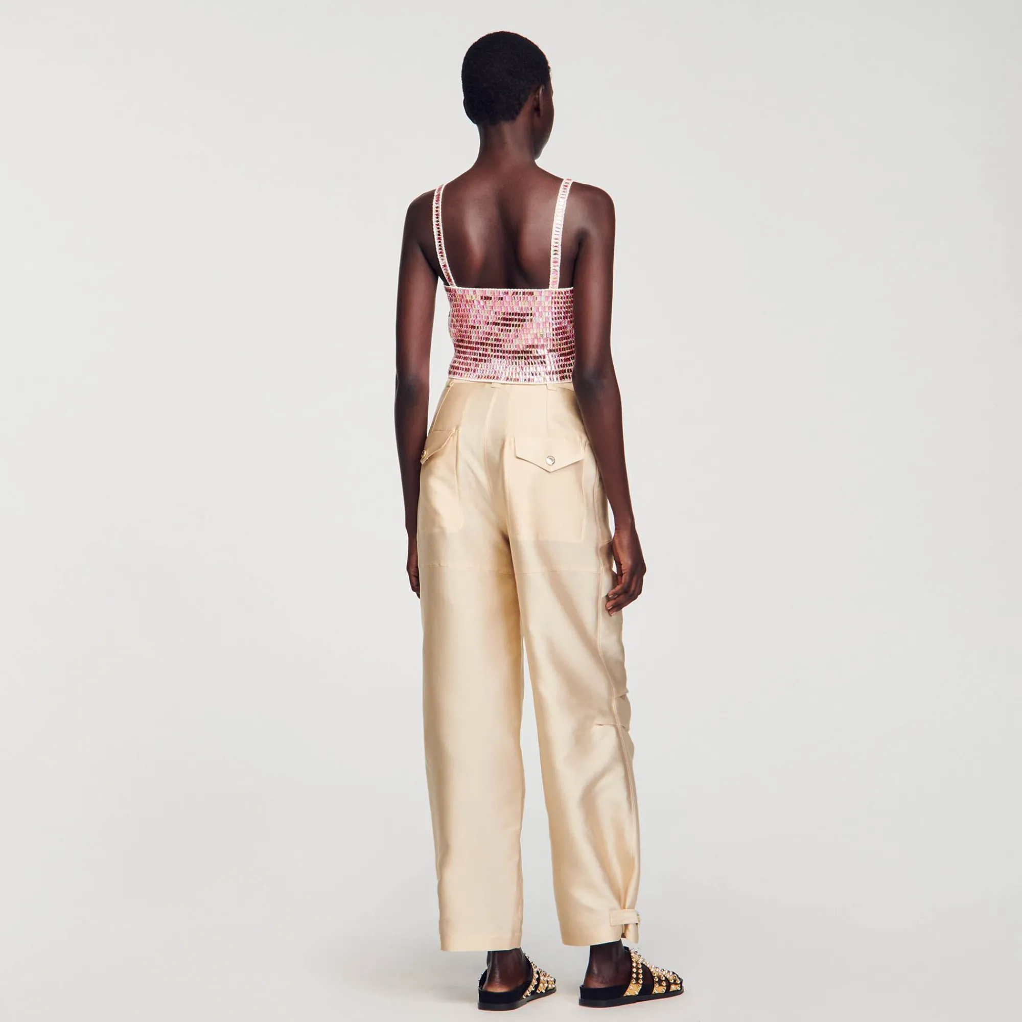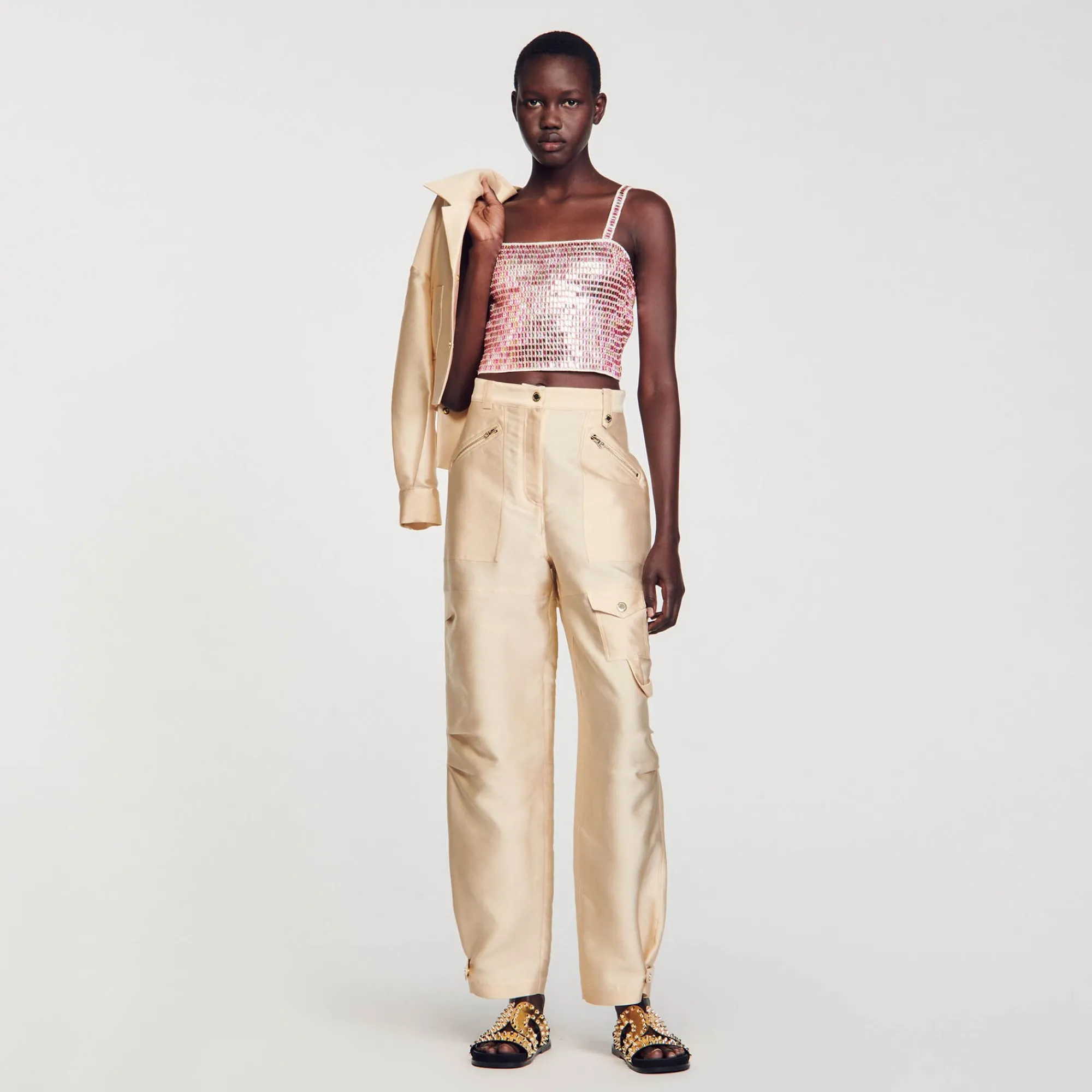 Top Curto De Malha Com Alças Finas E Detalhe De Strass Fantasia Bordado Por Toda Parte. Top Feminino De Malha Sandro St…