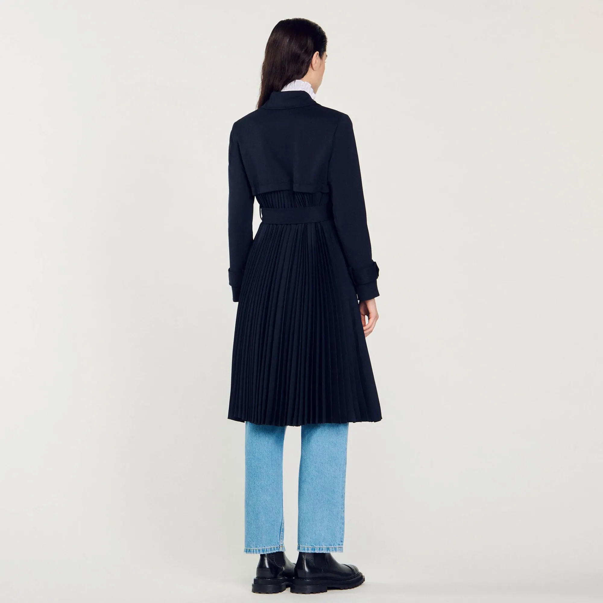 Mulheres Sandro Paris Trench Coat Com Insercao Plissada